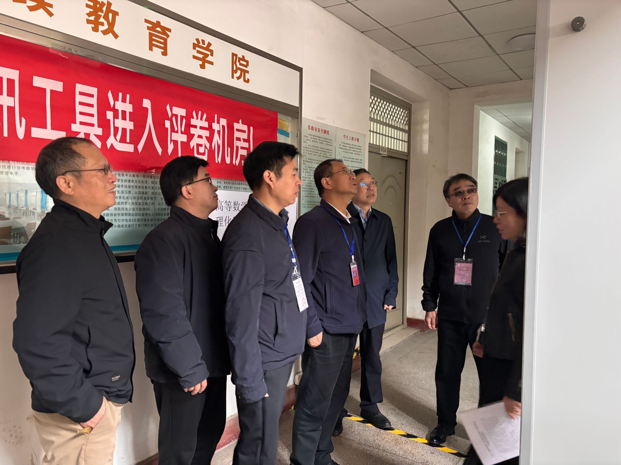 梅亚平一行深入阅卷机房、监控室等场所,详细察看阅卷流程、进度及技术保障措施。