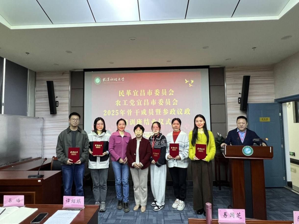 11月7日,我校与民革宜昌市委员会、农工党宜昌市委员会联合举办的宜昌部分民主党派2025年骨干成员暨参政议政培训班结业仪式在青山校区钢铁楼1004会议室举行。宜昌市政协副秘书长、农工党宜昌市委会专职副主委易国芝,校方代表继续教育学院培训部主任陈翠玲参加结业仪式。仪式由本次培训班班长阙自强主持。