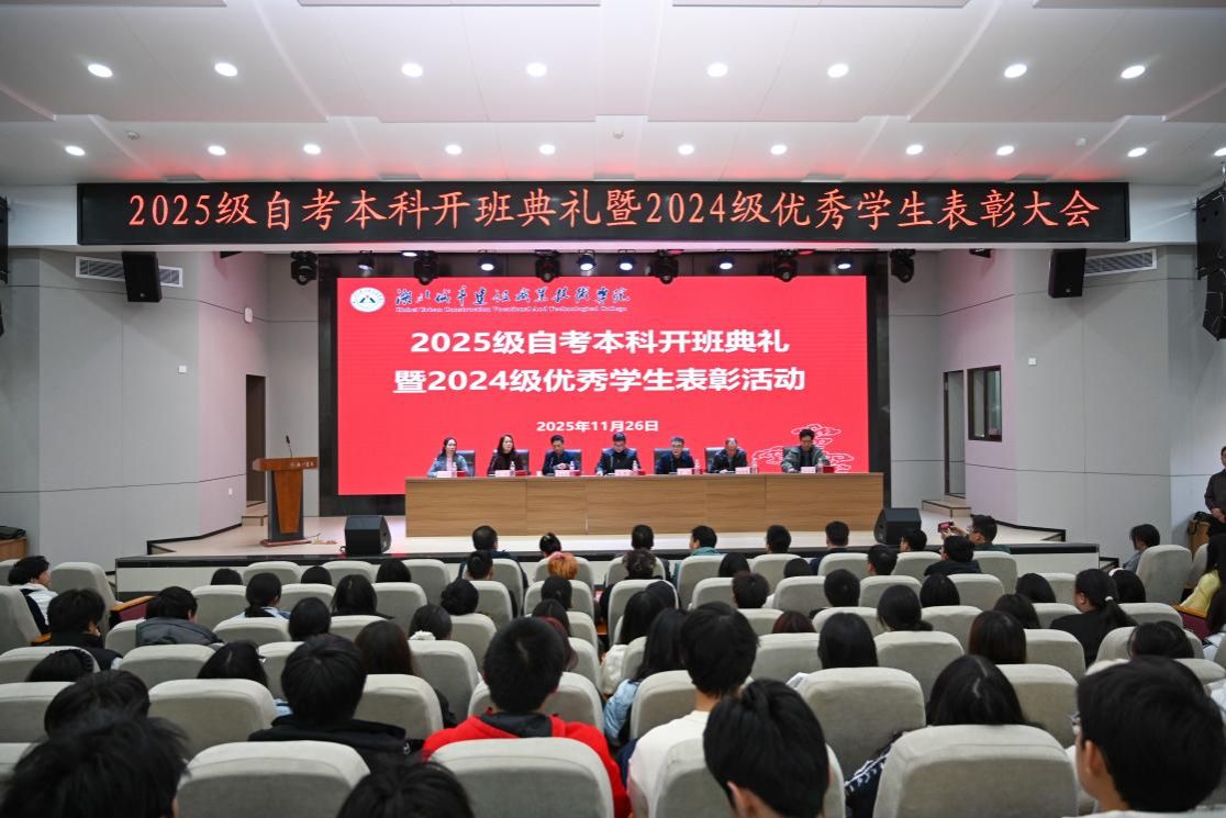 11月26日,继续教育学院副院长李哈、成红峰、自学考试办公室主任王新颖一行三人赴我校高等教育自学考试助学机构湖北城市建设职业技术学院参加学校2025级自考专升本开班典礼暨2024级优秀学生表彰活动。武汉工程大学继续教育学院院长严也舟、党总支副书记、副院长曾颖、湖北城市建设职业技术学院副校长易操、继续教育学院院长张兹伟等出席活动。
